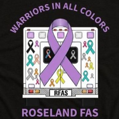 Our Warriors in All Colors shirt is to spread awareness for all cancers. The Lavender Ribbon is the All-Cancer color, joined with some of the other major cancer ribbon colors on the back of an ambulance. Available until November 30th, 2025. All proceeds will be donated to Cancer Research.